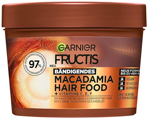 Garnier Fructis Macadamia Masque capillaire sans silicone 3 en 1 pour cheveux secs et rebelles, sensation naturellement douce, effet lissant et anti-frisottis, sans silicone, 400 ml