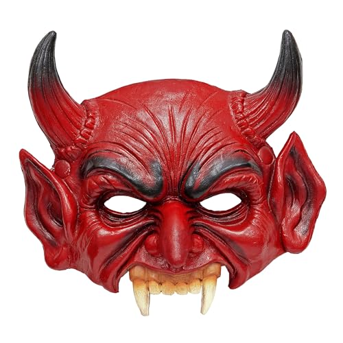 HUSHUI Masque d'horreur d'halloween, Couverture de Visage en Latex de Cosplay Japonais, Couverture de tête en Caoutchouc Souple d'horreur d'anime Halloween fantôme démon Couverture de Visage