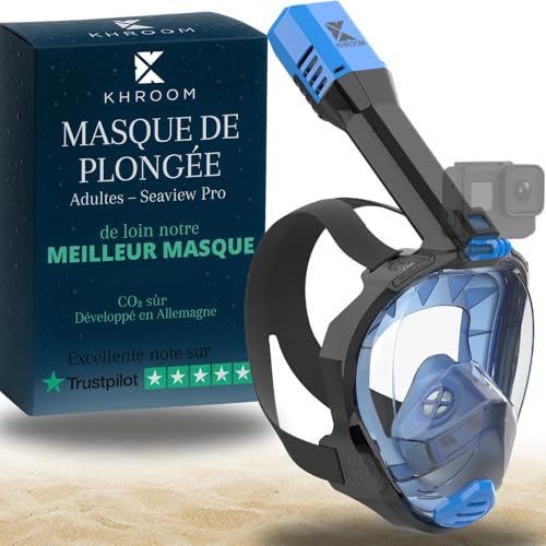 Khroom Masque de Plongée Intégral Seaview Pro | Notre Meilleur Masque de Snorkeling pour Adultes | sans Risque de CO2 | Vision Cristalline, Respiration Facile, Facile à Utiliser (L-XL Bleu)