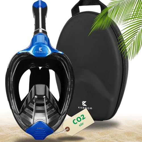 Khroom Masque de Plongée Intégral | CO2 sans Risque Garantie de DEKRA | pour Adultes et Enfants | Masque plongée en apnée | Masque de Snorkeling | Seaview X (L/XL, Bleu+Soft-Case)