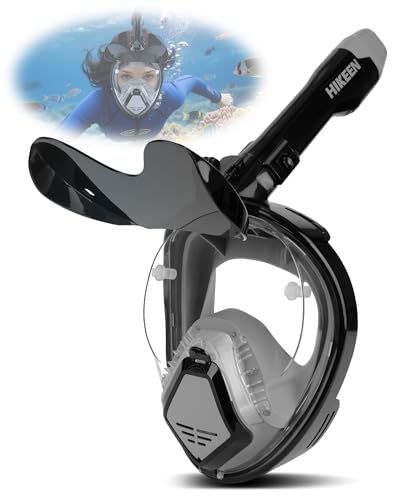 Hikeen Masque de Snorkeling Intégral: Masque Plongée Adulte, Masque Tuba Étanche et Anti-Buée Confortable pour Jeunes 180° Vue Panoramique avec Support Caméra(L)