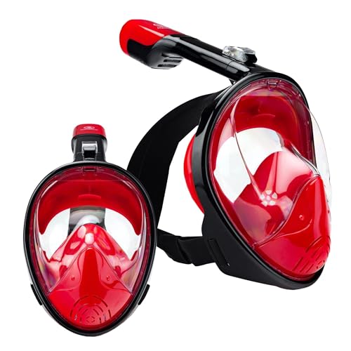 AQUASTIC Masque intégral pour la plongée avec Tuba Large Champ de Vision Verre trempé Tuba en Silicone avec Technologie Dry Top étanche à l'air Design Rouge Taille L-XL SMA-01SC
