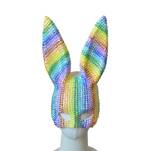 UncleS Strass Mascarade Masque Coloré Halloween Lapin Visage Couleur Arc-en-ciel Cosplay Pour Hommes Femmes Cosplay Masque Coloré