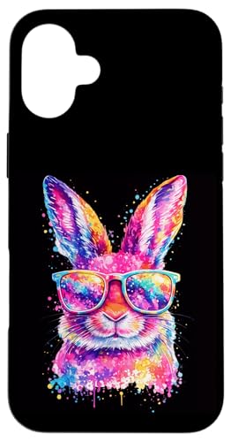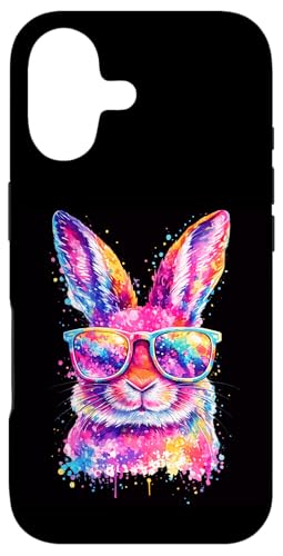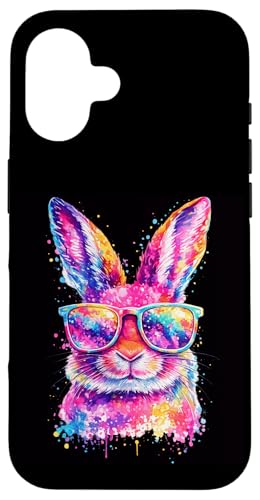 Masque de Lapin avec Lunettes Tie Dye Happy Easter Day Holiday Coque pour iPhone 16 Plus