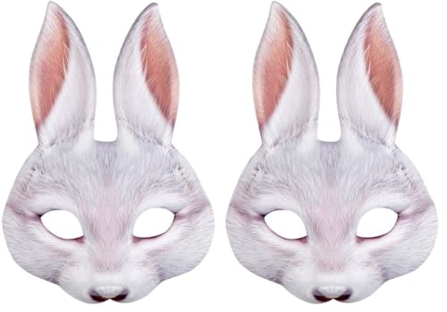 HDGSAFD 2 Morceaux De Masque Animal, Masque De Lapin Wolf, Masque Créatif À Demi-Face, Accessoires De Rôle, Masque Oculaire Amusant, Décoration De Masque De Mascarade.