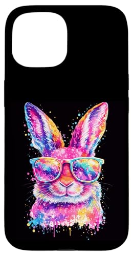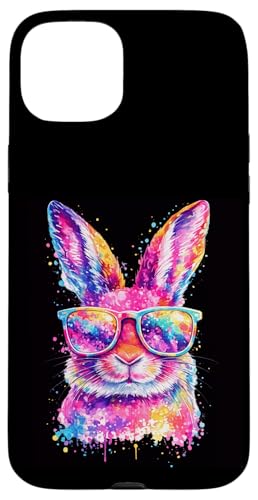 Masque de Lapin avec Lunettes Tie Dye Happy Easter Day Holiday Coque pour iPhone 15 Plus