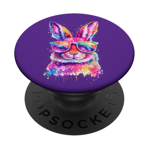 Masque de Lapin avec Lunettes Tie Dye Happy Easter Day Holiday PopSockets PopGrip Adhésif