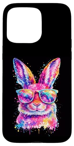 Masque de Lapin avec Lunettes Tie Dye Happy Easter Day Holiday Coque pour iPhone 15 Pro Max