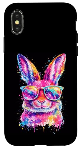 Masque de Lapin avec Lunettes Tie Dye Happy Easter Day Holiday Coque pour iPhone X/XS