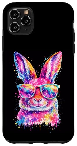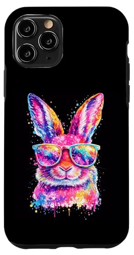 Masque de Lapin avec Lunettes Tie Dye Happy Easter Day Holiday Coque pour iPhone 11 Pro
