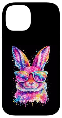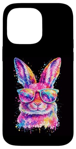 Masque de Lapin avec Lunettes Tie Dye Happy Easter Day Holiday Coque pour iPhone 14 Pro Max