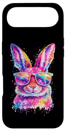 Masque de Lapin avec Lunettes Tie Dye Happy Easter Day Holiday Coque pour iPhone 17 Pro Max