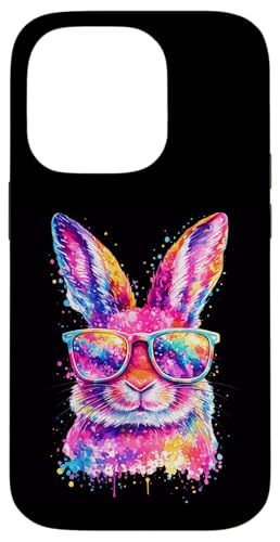 Masque de Lapin avec Lunettes Tie Dye Happy Easter Day Holiday Coque pour iPhone 14 Pro