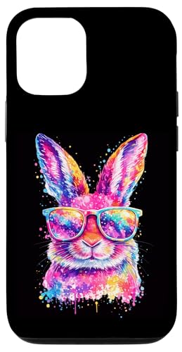 Masque de Lapin avec Lunettes Tie Dye Happy Easter Day Holiday Coque pour iPhone 13 Pro