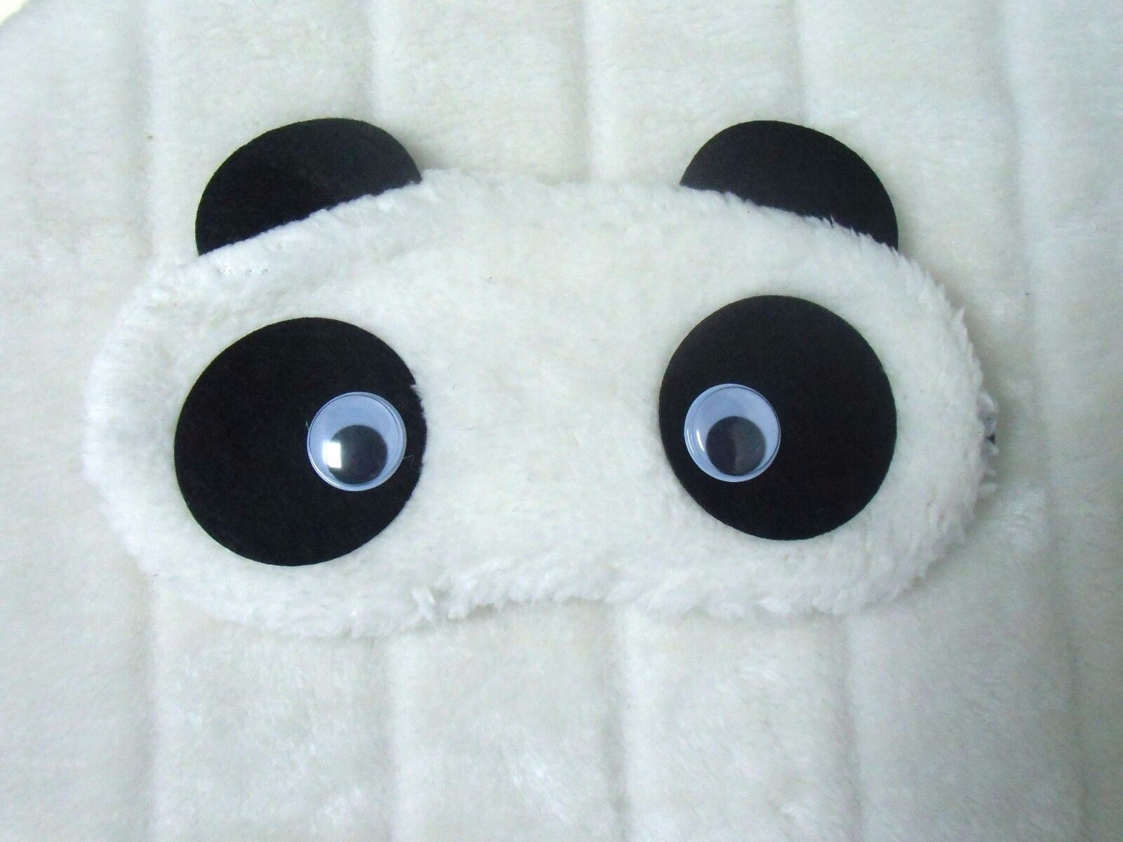 Masque de sommeil nuit repos peluche tête de panda blanche yeux mobiles original