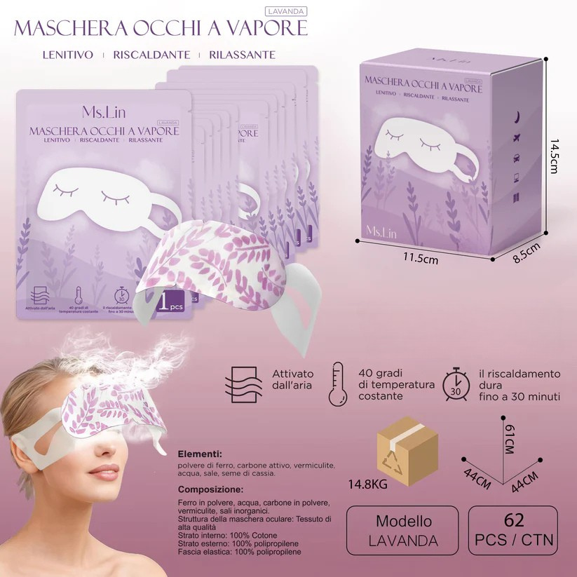 Masque Yeux À Vapeur Lavande Autoréchauffant 5 Pièces Détente Chaude Nuit