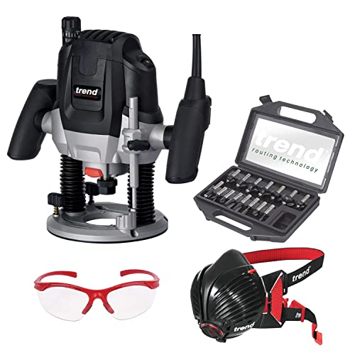 Trend Ultimate Routing Kit de démarrage avec toupie d'atelier Trend T7EK, 15 pièces, masque respiratoire P3 et lunettes de sécurité, 1,27 cm, 2100 W, 240 V, noir, T7/Starter