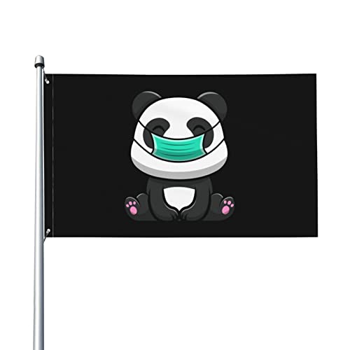 Panda mignon portant un masque drapeau 3x5 pieds extérieur Patio jardin pelouse bienvenue décoration bannière intérieur maison fête bannière