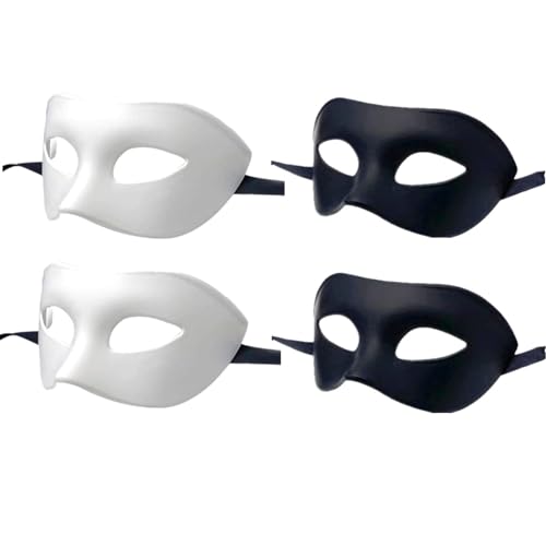 LECMACY Masque de bal masqué pour homme et femme, demi-masque en plastique souple et élastique, couleur unie, convient à tous les bals de fin d'année (2 blancs + 2 noirs)