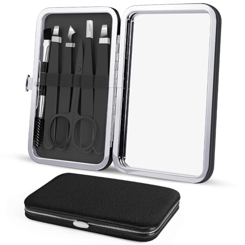 Flintronic 6 Pièces Kit de Pince a Epiler, Pince à Sourcils de Précision Professionnelle, Pincettes Acier Inoxydable avec Étui, Portable, pour Enlèvement des Points Noirs, Poils Incarnés, Cils, Noir