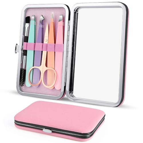 Flintronic 6 Pièces Kit de Pince a Epiler, Pince à Sourcils de Précision Professionnelle, Pincettes Acier Inoxydable avec Étui, Portable, pour Enlèvement des Points Noirs, Poils Incarnés, Cils, Rose