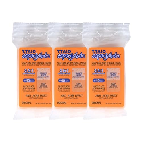 T.Taio – EsponJabón – Lot de 3 Éponges + Savons 2 en 1 Anti-Imperfections – Réduit les Points Noirs et l’Excès de Sébum – Unisexe – Pour Tous Types de Peau – Produit Artisanal – 360g