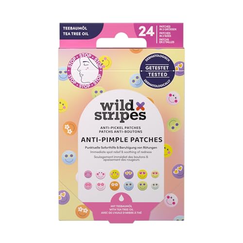Wild Stripes - Anti-Pimple Patches Smile Stop - Patchs colorés avec hydrokolloïde et huile d’arbre à thé pour soin rapide et efficace - Anti boutons et points noirs - Peau impure - 24 pcs