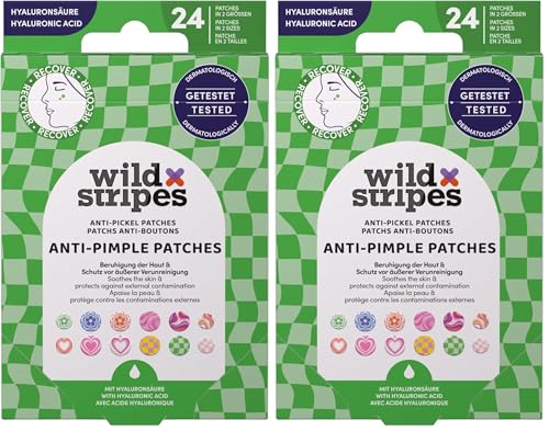 Wild Stripes - Anti-Pimple Patches Groovy Recover - Patchs colorés avec hydrokolloïde et acide hyaluronique pour soin jour et nuit - Anti boutons et points noirs - Peau impure - 24 pcs (Lot de 2)