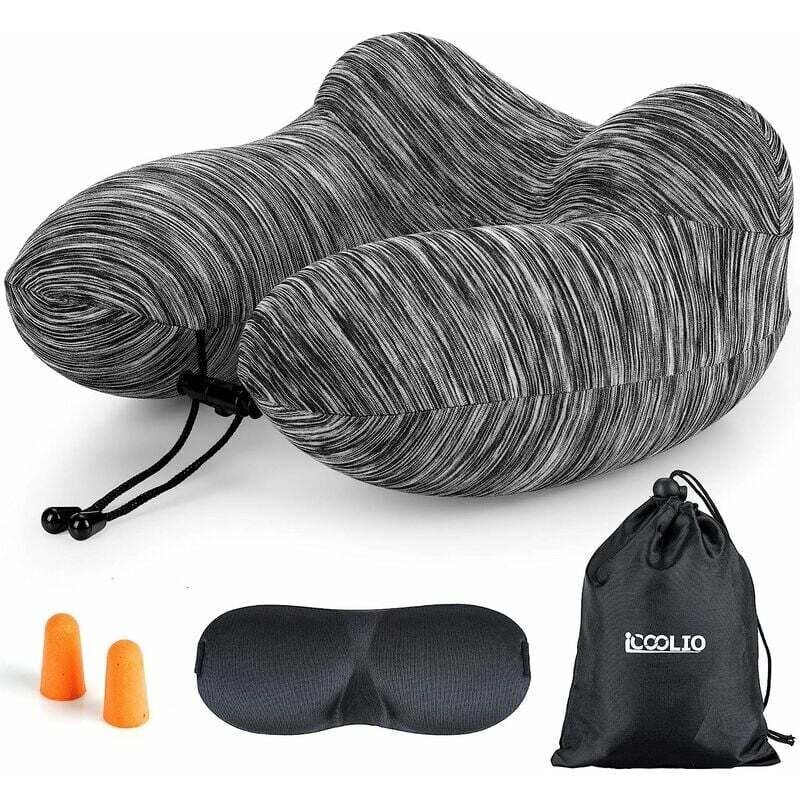 Oreiller de Voyage Gonflable pour la Voiture, Le Train et l'avion, Coussin pour Le Cou, avec Masque de Sommeil, Bouchons d'oreille et Sac de