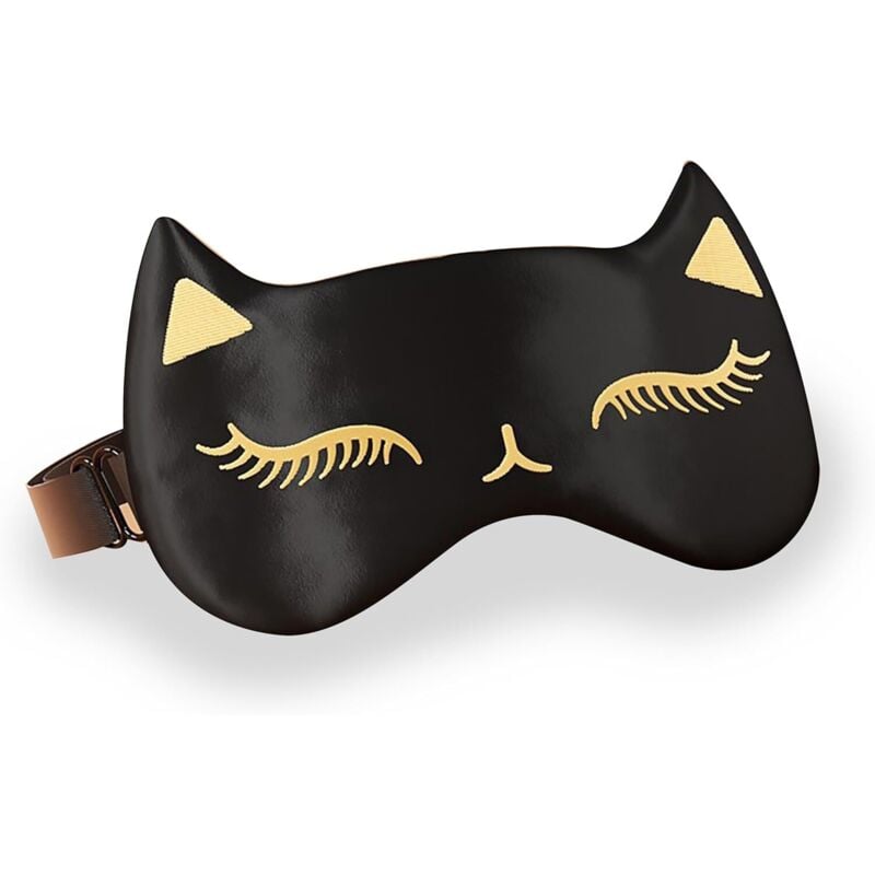 Masque de sommeil en soie naturelle pour les yeux de chat, mignon et doux, idéal pour dormir (noir 1)