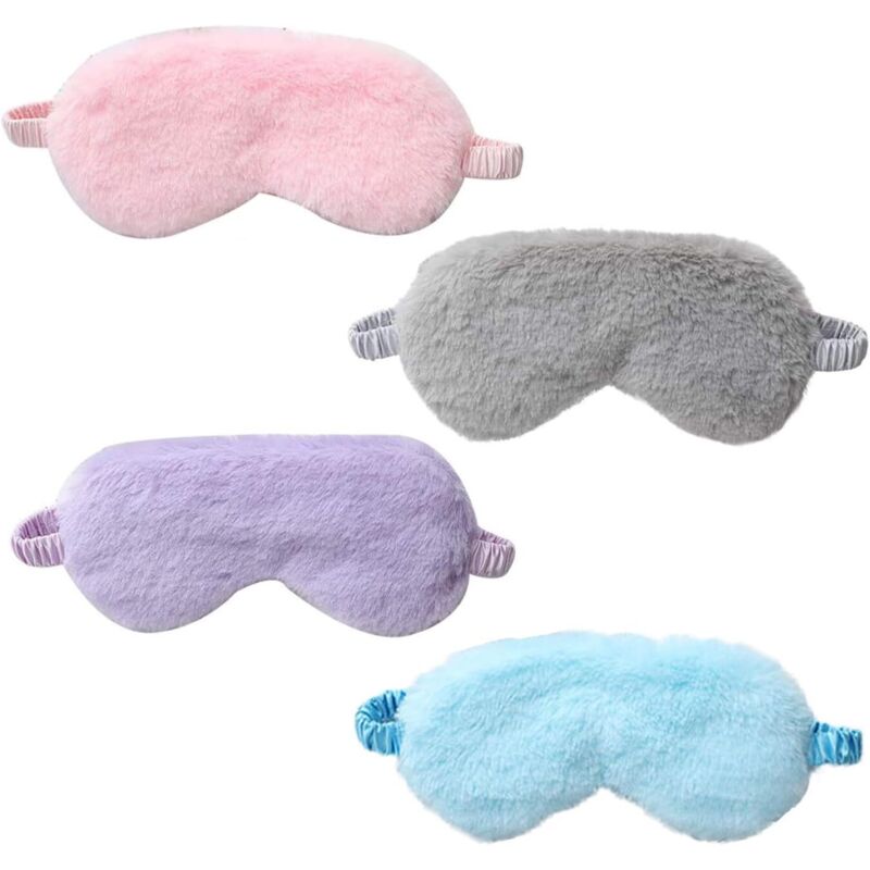 4 pièces masque pour les yeux en peluche doux moelleux masque pour les yeux en peluche masque de sommeil réglable pour enfants adultes femmes,