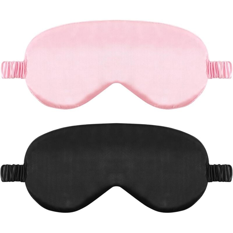 Lot de 2 masques de sommeil en soie, bandeau en satin doux avec sangle élastique, masque de nuit confortable pour femmes et hommes (noir et rose)