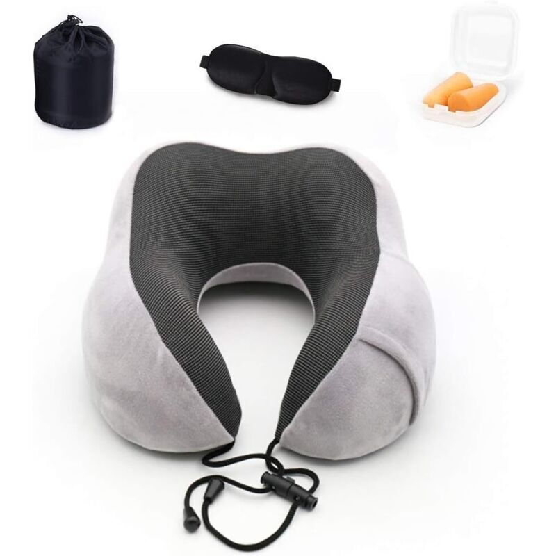 Coussin de Voyage, Oreiller de Voyage Mousse à Mémoire de Forme, Coussin de Support Cervical pour Avion Train,Masque de Sommeil, Bouchons d'oreille
