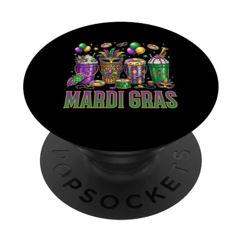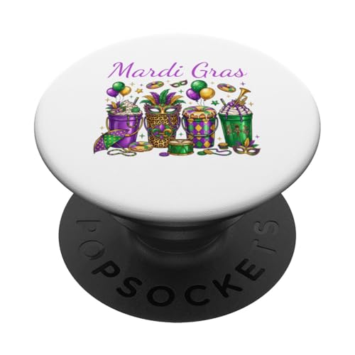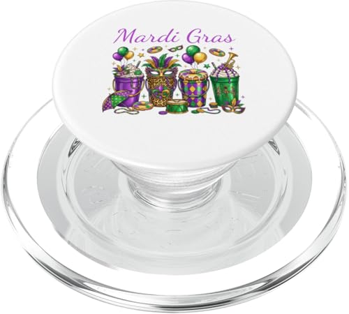 Mardi Gras Party Boissons et Masques colorés Carnaval Party PopSockets PopGrip Adhésif