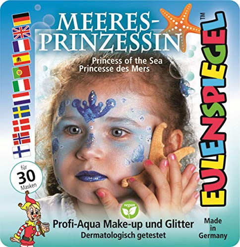 Eulenspiegel 204535 - Kit de motifs princesse des mers, 3 couleurs, 1 paillette, 1 pinceau, 1 notice, pour env. 30 masques, carnaval, fête à thème