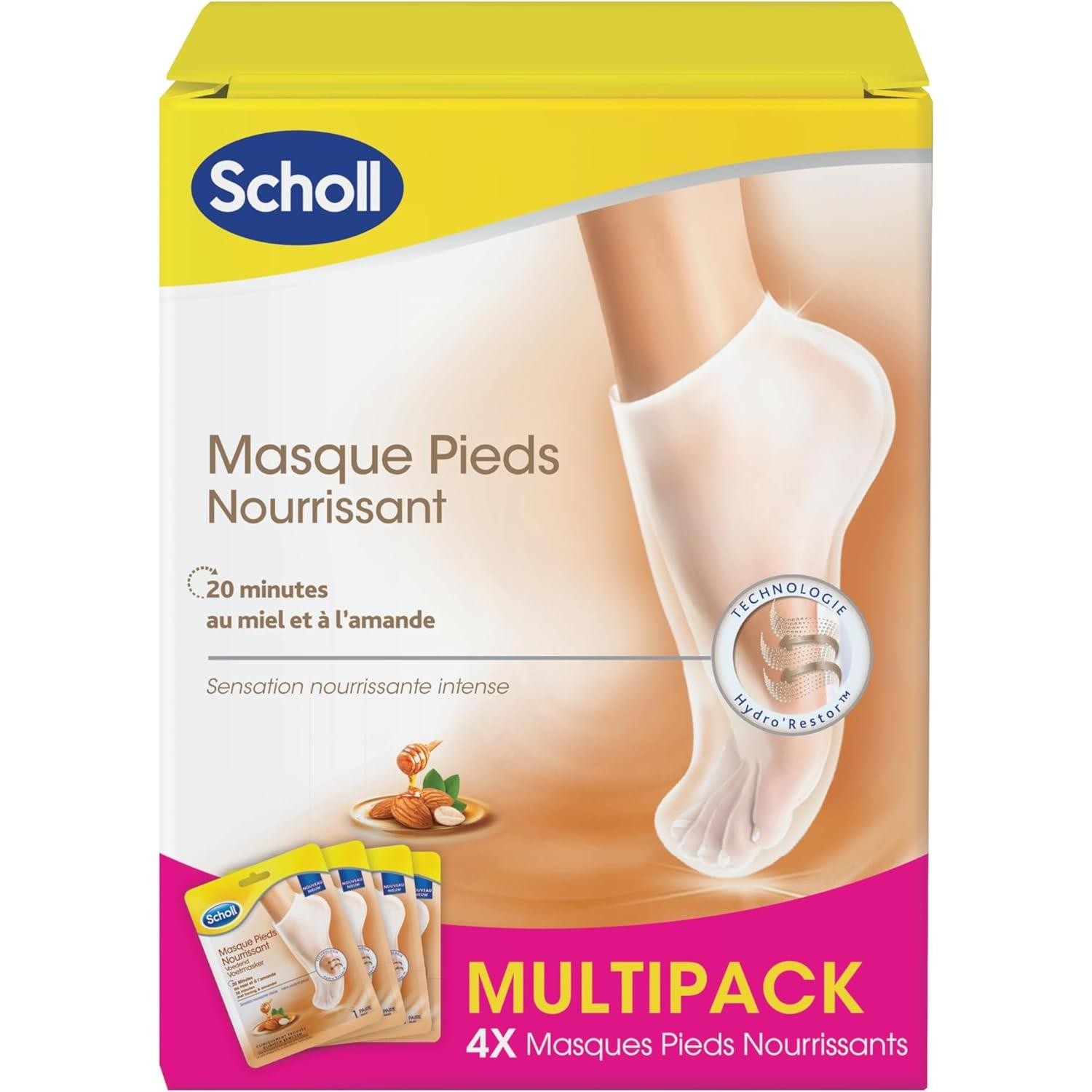 [9000026] SCHOLL Lot de 4 Paires Masques Pieds Nourrissant et Hydratant Miel ...
