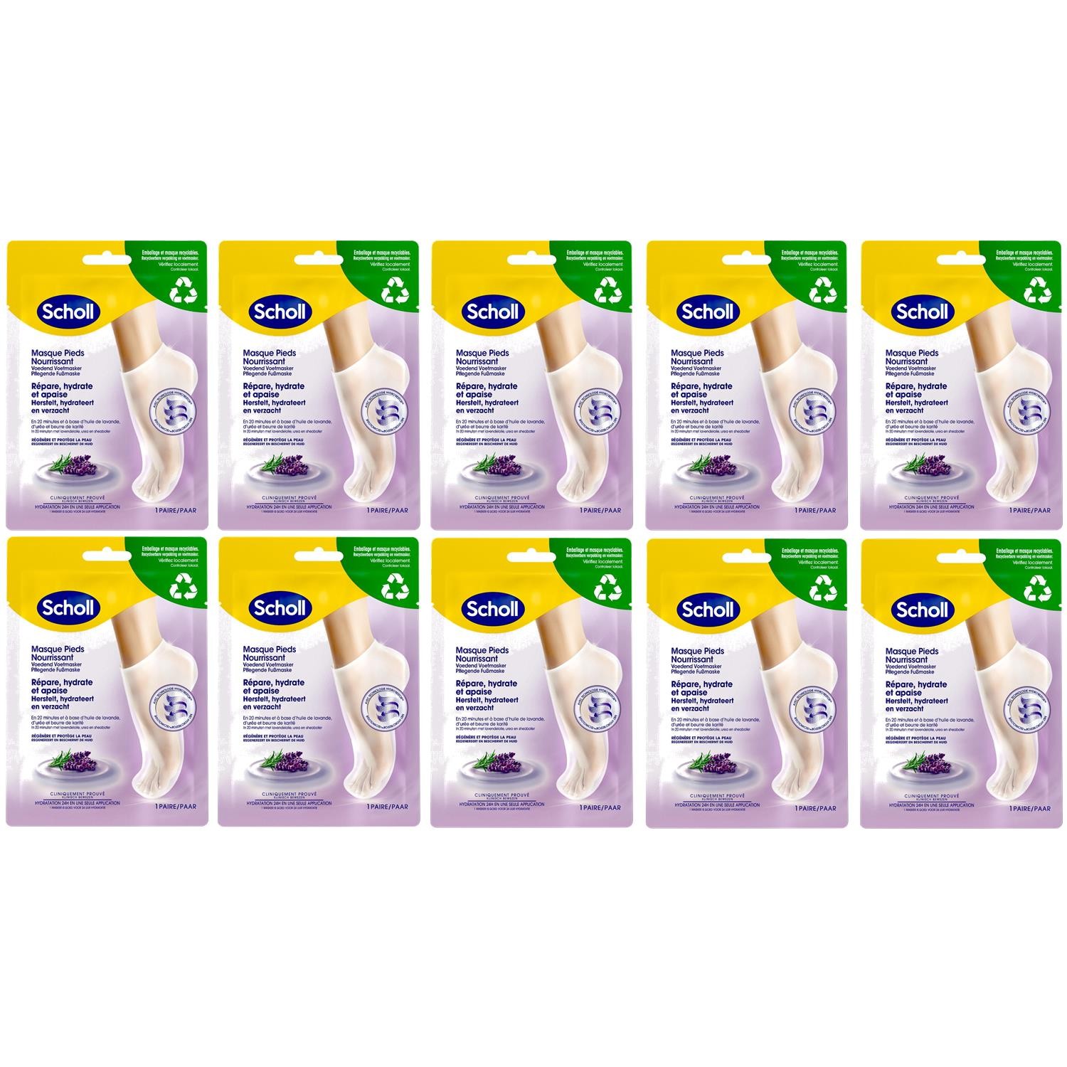 [3059949933402-10] Scholl Lot de 10 Masques Pieds Relaxant et Hydratant huile...