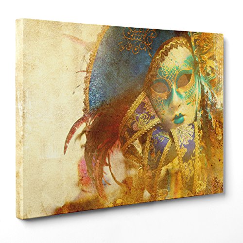 Tableau sur toile - encadré - Prêt à accrocher - Carnaval Venise - Masques vintage - 30 x 40 cm - Sans cadre - (cod.3314)