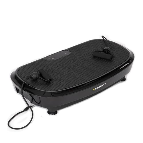 Techfit Plateforme Vibrante, Plaque Fitness Maison 2D 200W 99 Niveaux Télécommande Écran LED Bluetooth Bandes Résistance 150 Kg Compact Silencieux Massage Anti Cellulite Entraînement Complet