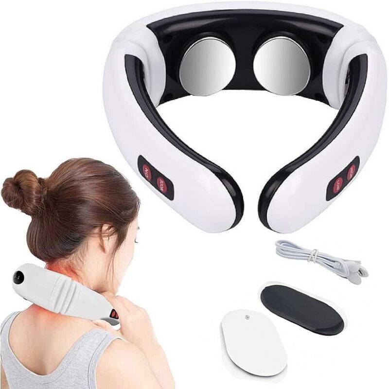 Masseur Cervical, Cou, Dos, Jambe, Genou et Muscles Pack +4 Tampons - Électrique et Portable - 6 Vitesse - Dispositif de Massage des Élections Sans
