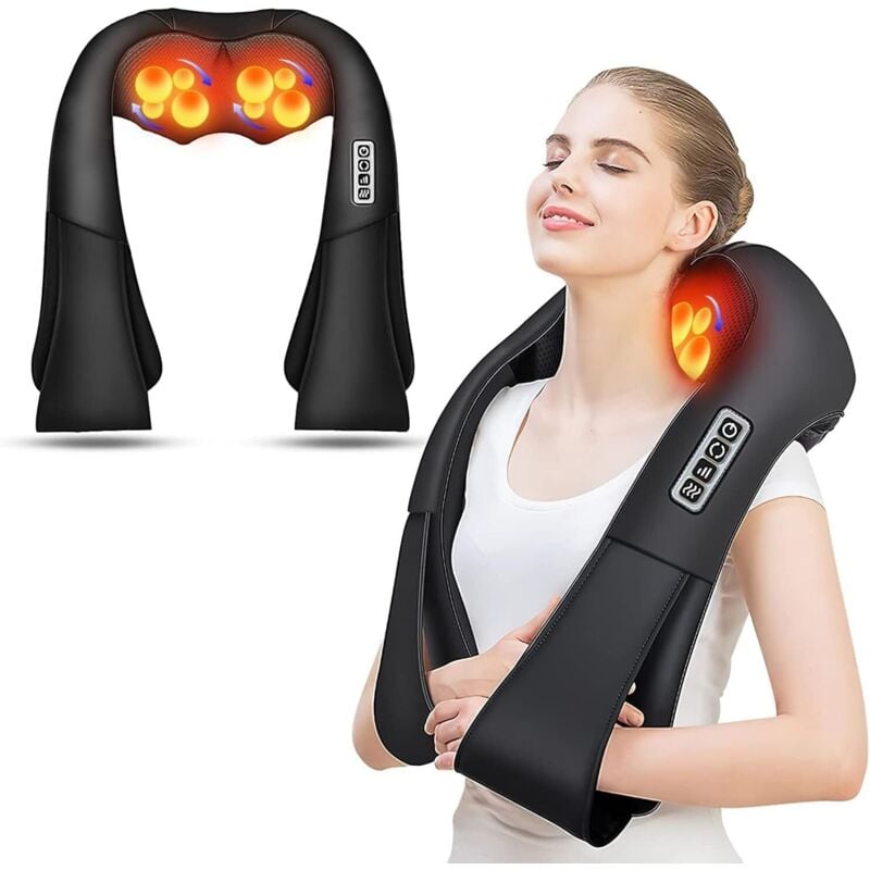 Masseur Cervical avec Coussin Chauffant, Massage Dos et Cou, Soulage Douleurs Musculaires Cou, Épaules, Dos, Jambes et Pieds, Idéal Cadeaux pour