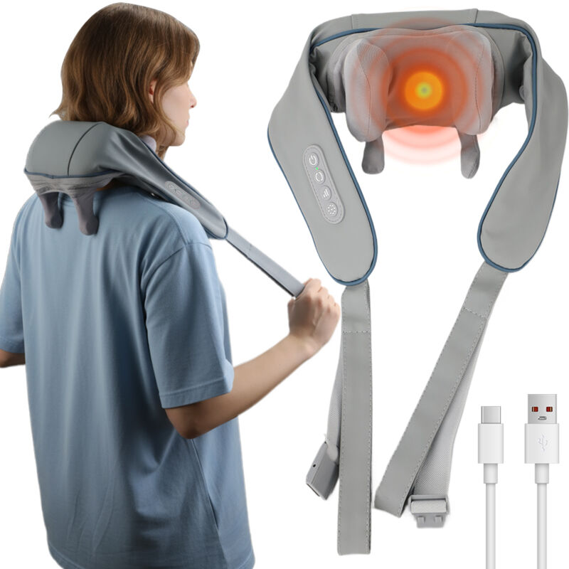 Étireur de cou avec chaleur, masseur de cou rechargeable, coussin de massage correctif pour les épaules, coussin de soulagement du cou, coussin de massage avec chaleur, masseur de tissus profonds pour
