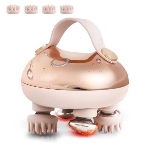 arboleaf Masseur de tête électrique, masseur de cuir chevelu IPX7 étanche avec 4 têtes chaudes et 4 têtes de massage, masseur de tête pratique avec 4 niveaux pour la relaxation