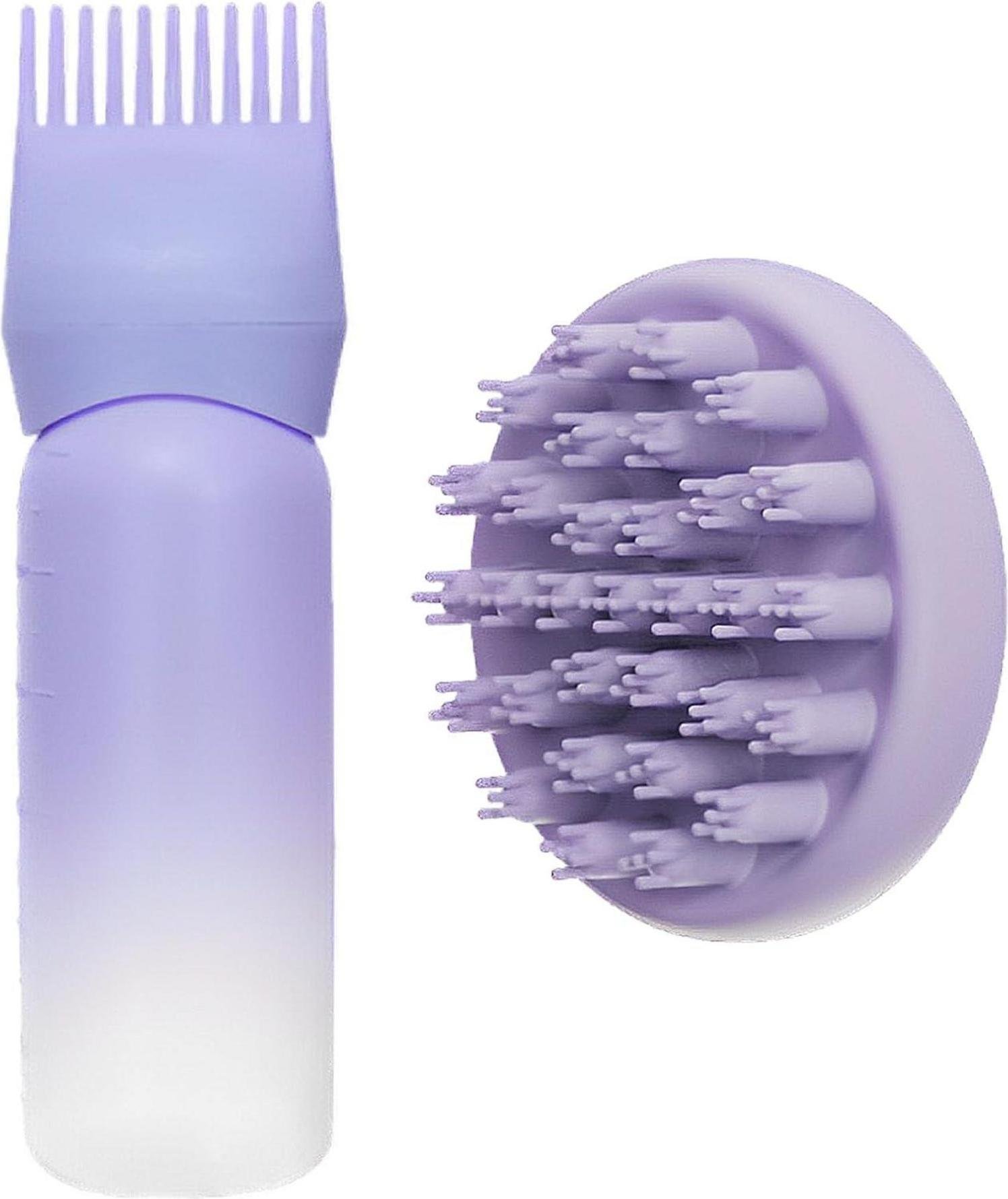 Applicateur d'huile pour cheveux avec masseur pour le cuir chevelu et flacon - dégradé de violet