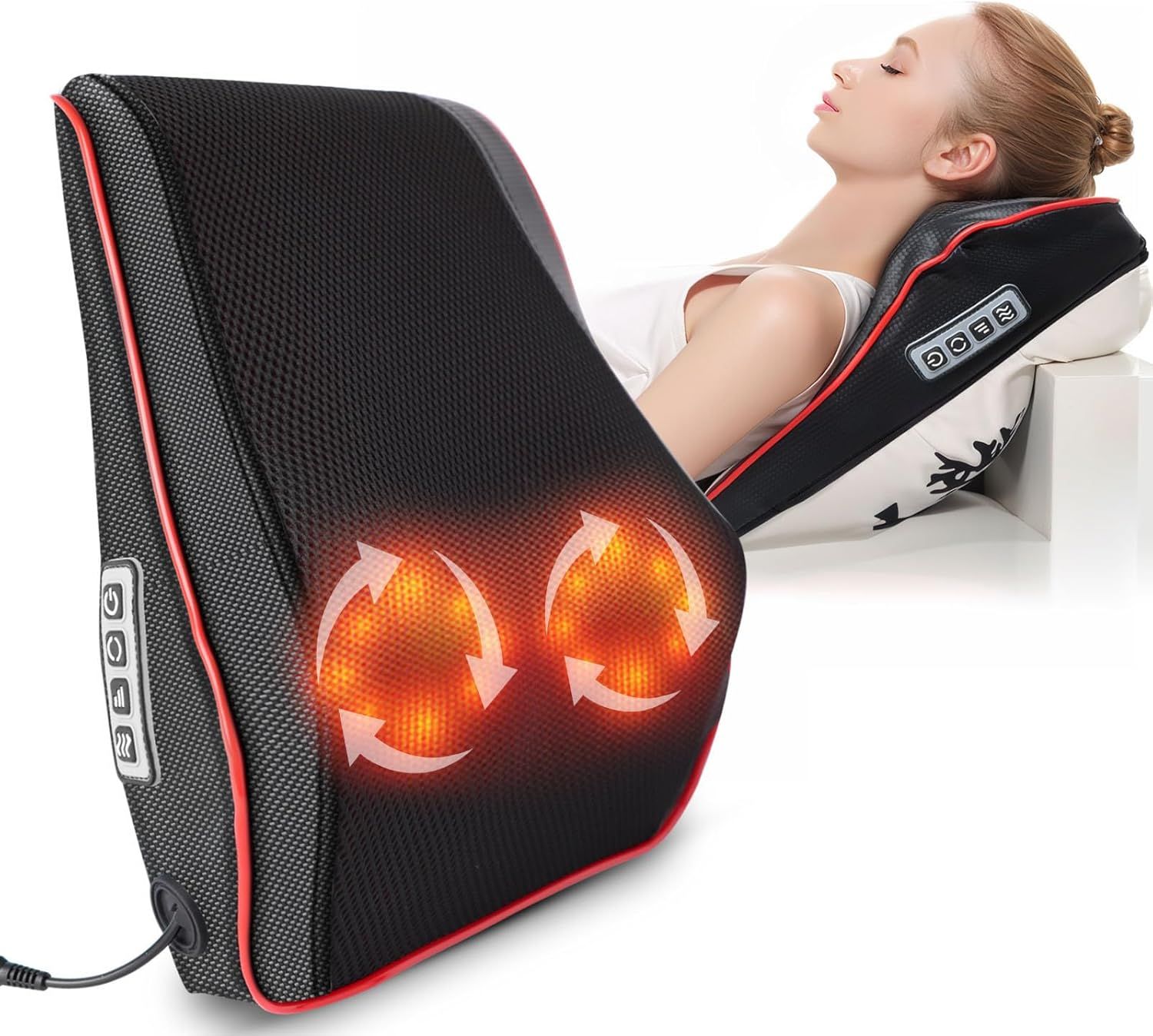 HGTRH Masseur Cervical avec Chaleur Relaxante, 2 Température Masseur Dos et Cou 3D Contre Les Douleurs Musculaires, Soulage La Fatigue Après Le Travail Au Bureau