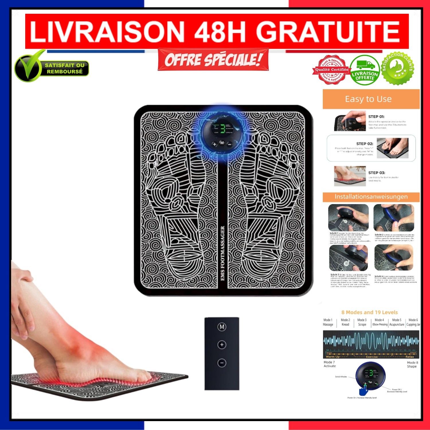 Masseur De Pieds EMS pour Neuropathie, Tapis De Massage éLectrique Portable Pliable, Soulagement De La Douleur Aux Jambes De Fasciite Plantaire, Douleur Aux Pieds()
