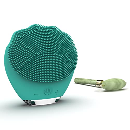 WottoCare Nettoyant Facial et Masseur en Silicone Rechargeable avec Rouleau de Jade Naturel et Pochette de Transport - Nettoyage Intelligent pour Tous Types de Peaux - Masseur Anti-Âge - Vert