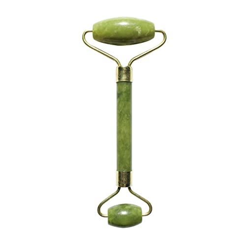 Sun & Sia - Masseur Visage en Pierre Naturelle - Rouleau de Jade (+ Housse) - Idéal pour Rafraîchir le Teint, Traiter les Poches et Cernes, Stimuler la Circulation - Peau plus Ferme et Élastique