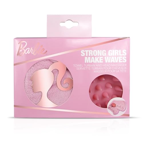 Barbie Make Waves Coffret Cadeau de Soins capillaires – Masseur de tête/Masseur du Cuir chevelu et Serviette Turban/Serviette en Microfibre – Séchage Rapide