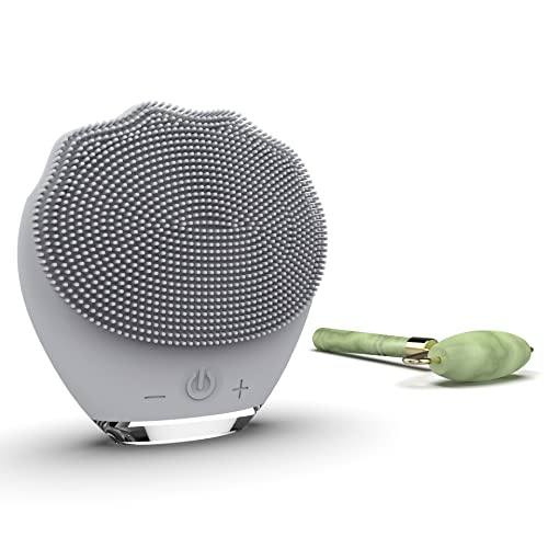 Wottocare - Nettoyeur Facial et Masseur en Silicone Rechargeable avec Rouleau en Jade Naturel et Pochette de Transport - Nettoyage Intelligent pour Tous Types de Peaux - Masseur Anti-Âge